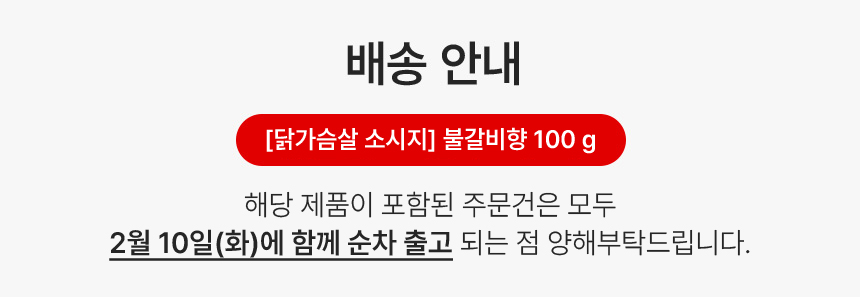 | 제품명 | 불갈비향 닭가슴살 소시지 | 식품유형 | 소시지(비살균제품) |